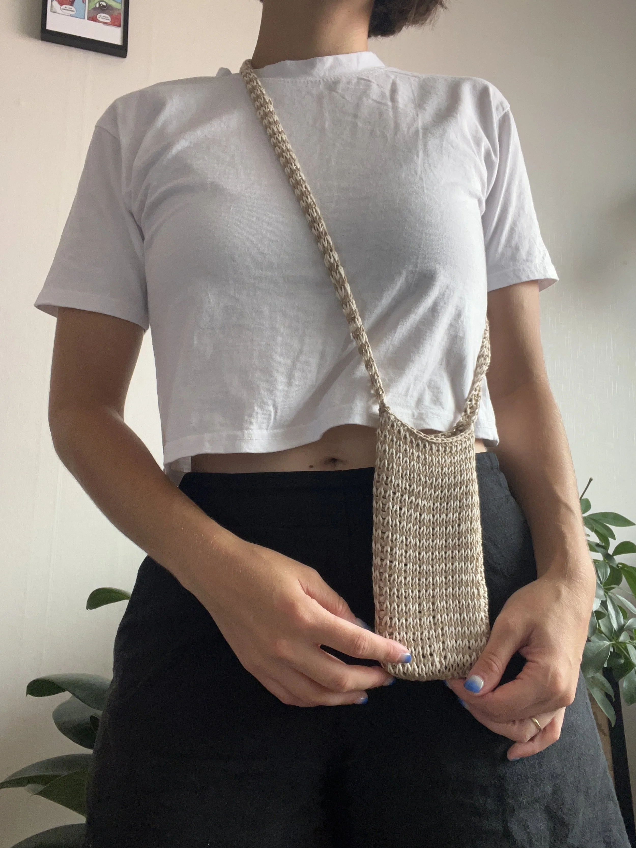 This Tunisian crochet phone bag is great for pocketless outfits — and for using up all that scrap yarn.